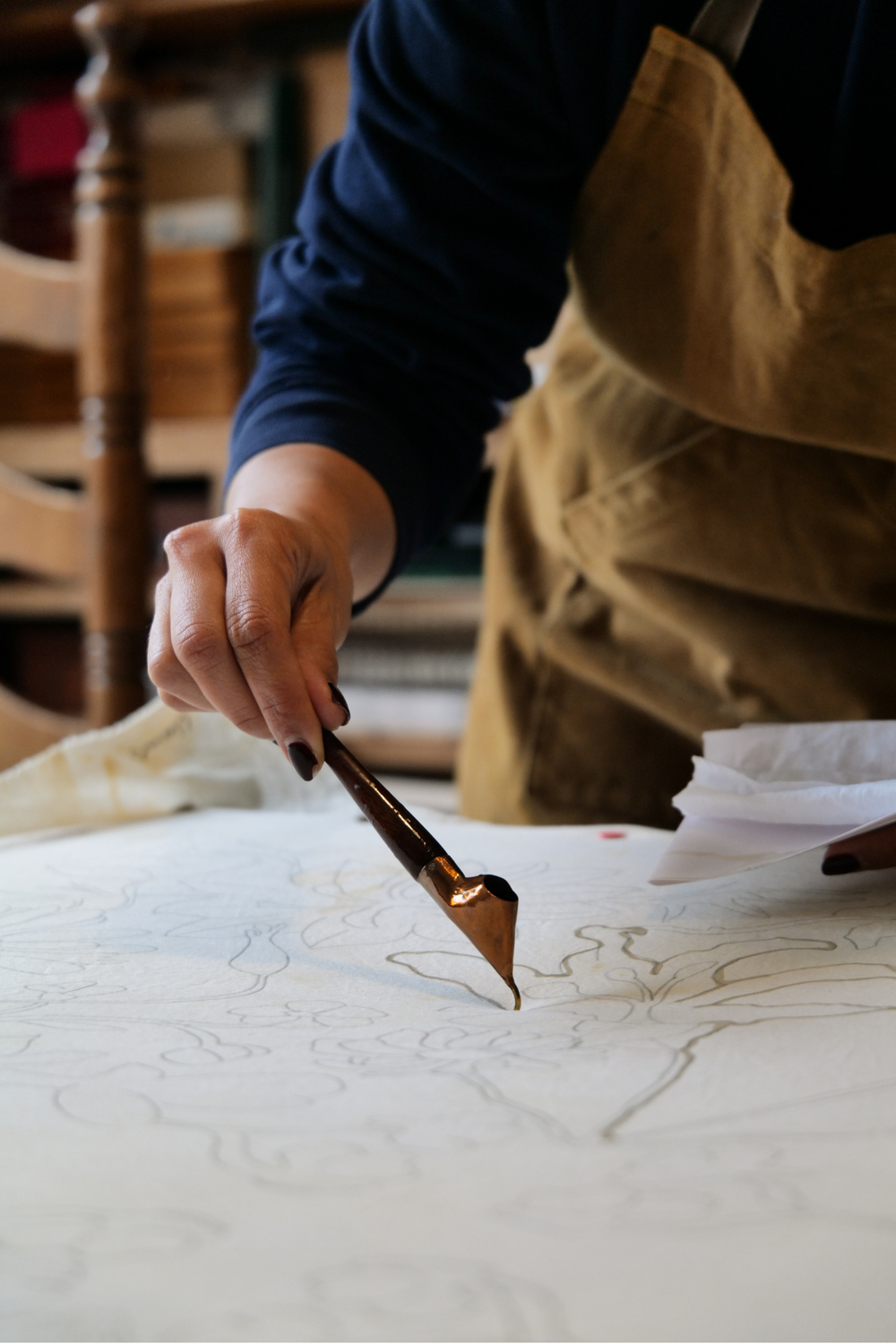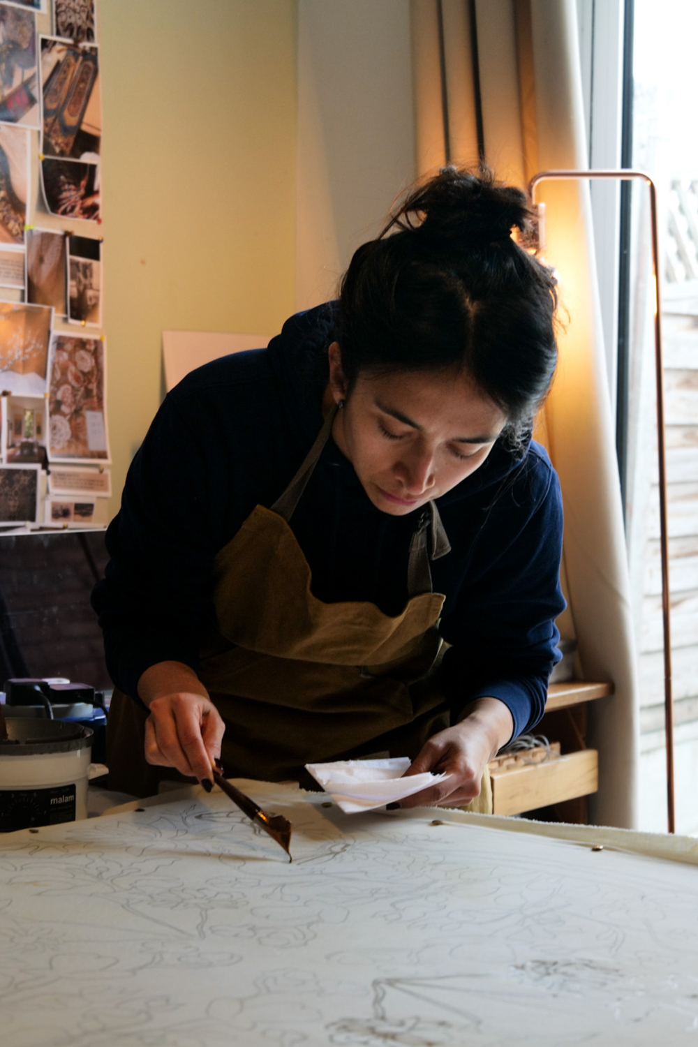 For Bangkok-born print artist Lisa King, flowers lie at the heart of her process. Compiled in abstract compositions that later become her prints, her flowers are dissected stem to stigma, or with heads severed, as pools of ink diffuse in the water surrounding them. Arising in her practice as a cathartic response that pays tribute to her late mother, the floral arrangements upon which King’s design work is centered have become a symbol of solace – the act of laying and repeating patterns guiding her in processing her grief.