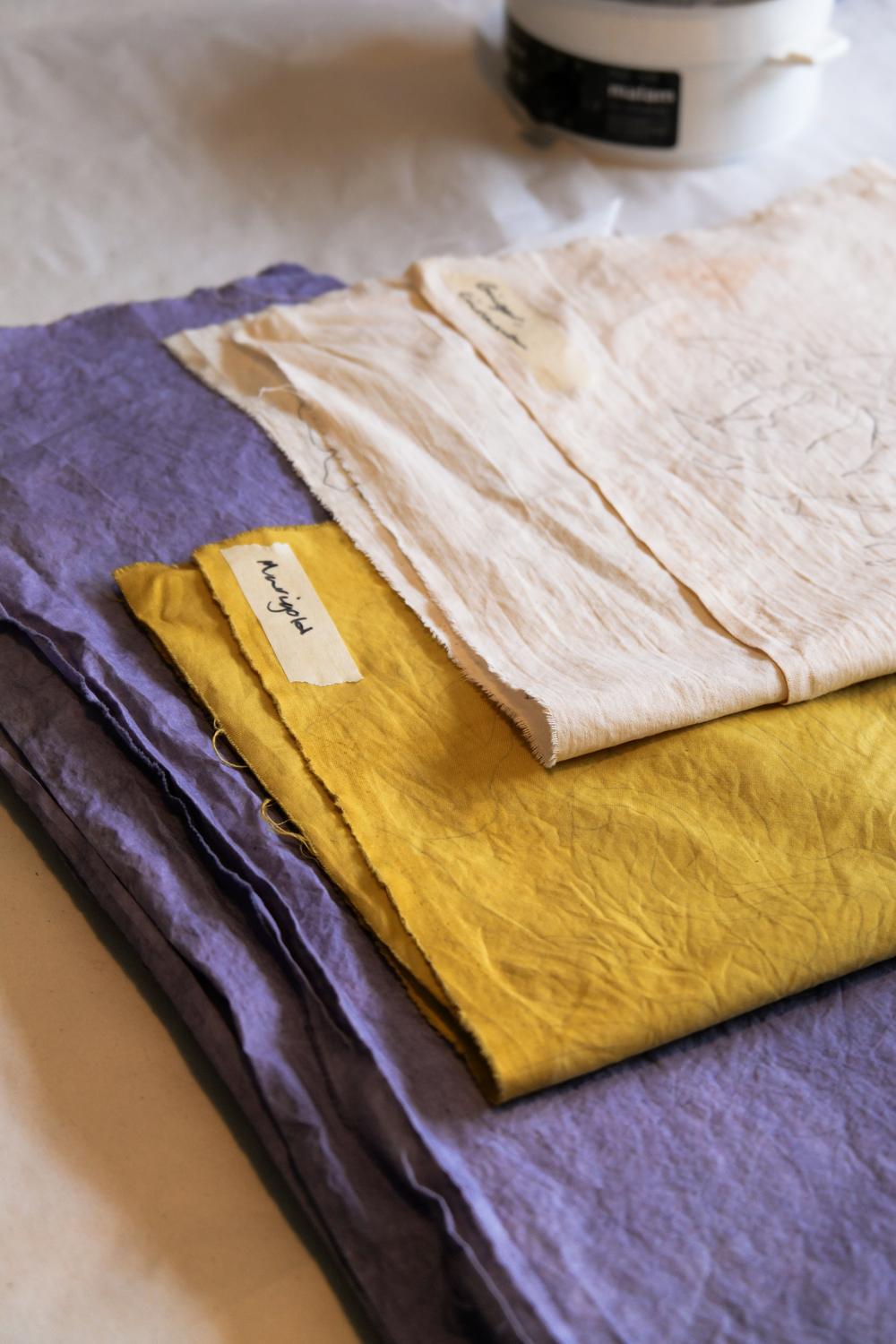 At the first and last hour of light of the day, a transfixing soft, pink light casts over the rolling hills; this is The Magic Hour. The landscape separates Into bold, singular silhouettes and you see can see essence of the farmland. Through photography, and drawing and layered screen prints, the collection features hues in varied subtle shades of the British landscape; from sage coloured oak, blue-black billberry, and cream wheat fields, contrasting yellow rapeseed, purple foxgloves and red poppy shapes.